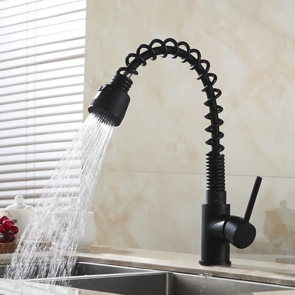 Commercial kitchen sink faucet spring pull down sprayer single handle mixer tap.